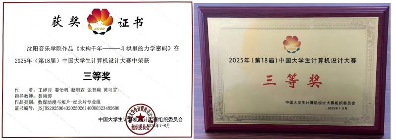 日前,2025年(第18届)中国大学生计算机设计大赛全国总决赛圆满落幕。在这场云集全国500多所高校、3000余名学子同台竞技的重量级赛事中,学院影视摄影与制作系的参赛作品《木构千年——斗拱里的力学密码》脱颖而出,荣获数媒动漫与短片-纪录片专业组三等奖,展现了学院在计算机技术与影像美学融合创新方面的扎实教学成果。