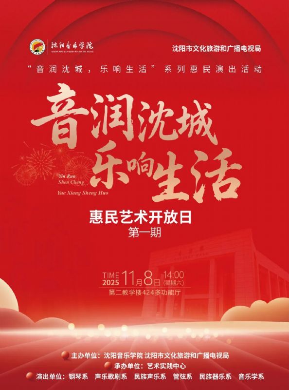 艺术之约,邀您共赴!沈阳音乐学院携手沈阳市文化旅游和广播电视局,诚意推出 “音润沈城,乐响生活”系列惠民演出第一期!