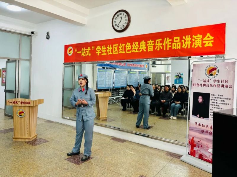 2025年10月24日,由学院举办的第41期“一站式”学生社区红色经典音乐作品讲演会在三好校区“一站式”学生服务中心举行。学生处、音乐教育学院的相关负责人以及50余名学生代表参加讲演会。讲演会由音乐教育学院辅导员刘佳楠主持。
