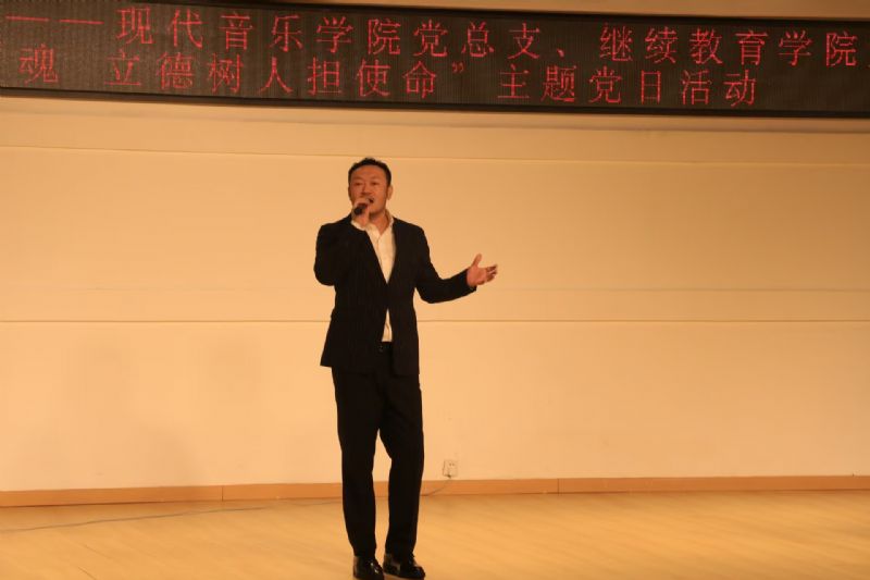 • 为深入学习贯彻习近平新时代中国特色社会主义思想和党的二十届三中、四中全会精神,推动党的作风建设常态化长效化,11月5日,现代音乐学院党总支与继续教育学院党总支联合举办“榜样引领铸师魂 立德树人担使命”主题党日活动。活动聚焦“共产党员应有的样子”活动主题,以党课与艺术融合的形式,引导师生筑牢信仰根基,强化立德树人使命,激发青年一代的政治热情与报国志向。活动由现代音乐学院党总支副书记郎彩飞主持,两个单位200余名师生参加。