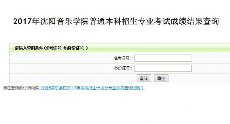 考生须同时输入本人身份证号(身份证号中X须大写)和沈阳音乐学院专业准考证号进行查询(例如:17010001等),请确保输入准确无误。