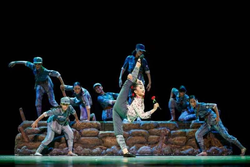 The performance work "The Flower of the Mountain in the Battlefield Is Different Red" by students of Dance School