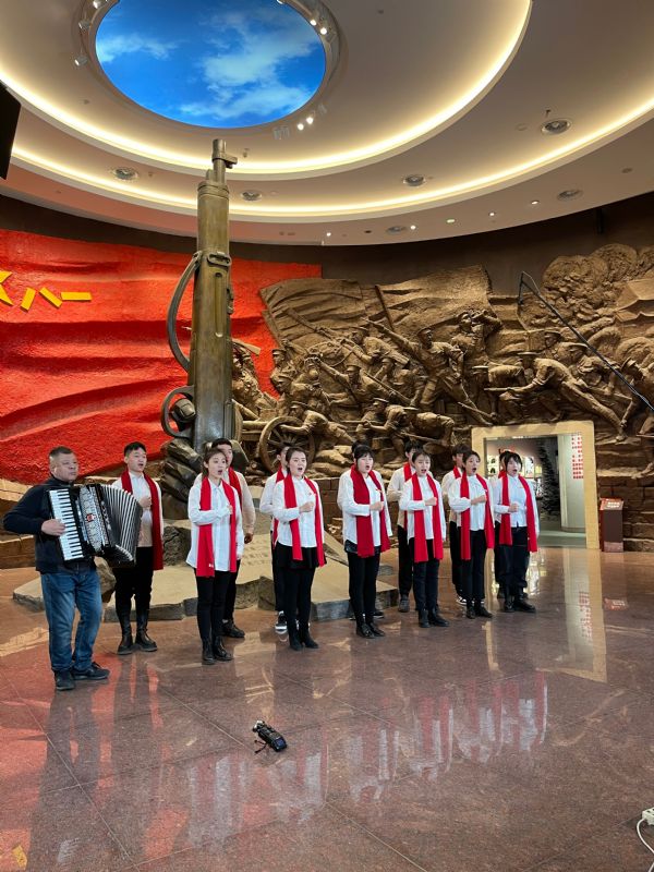 Teachers and students learn to sing the "Bayi Uprising Song" on the spot