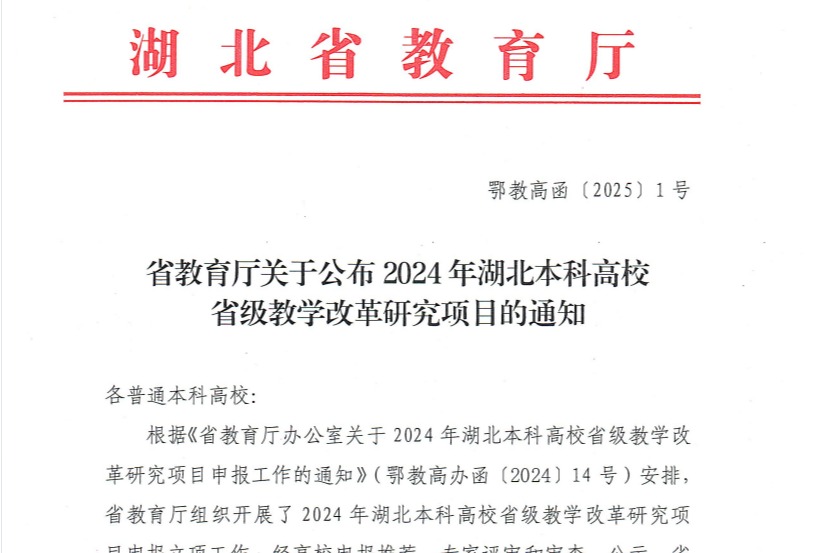 近日,省教育厅公布了《关于公布2024年湖北本科高校省级教学改革研究项目的通知》(鄂教高函〔2025〕1号),我校2项研究生教育项目正式获批省级立项,具体名单见下表。近年来,我校高度重视并持续推进省级研究生教育教学改革研究项目培育及建设工作,2023年,3项省级研究生教育教学改革研究项目(主持人:物电学院张静、医学部彭芳、动科学院杨烨)获批立项。研究生院通过精心组织、积极筹备,再次取得了较好成绩。我校将充分发...