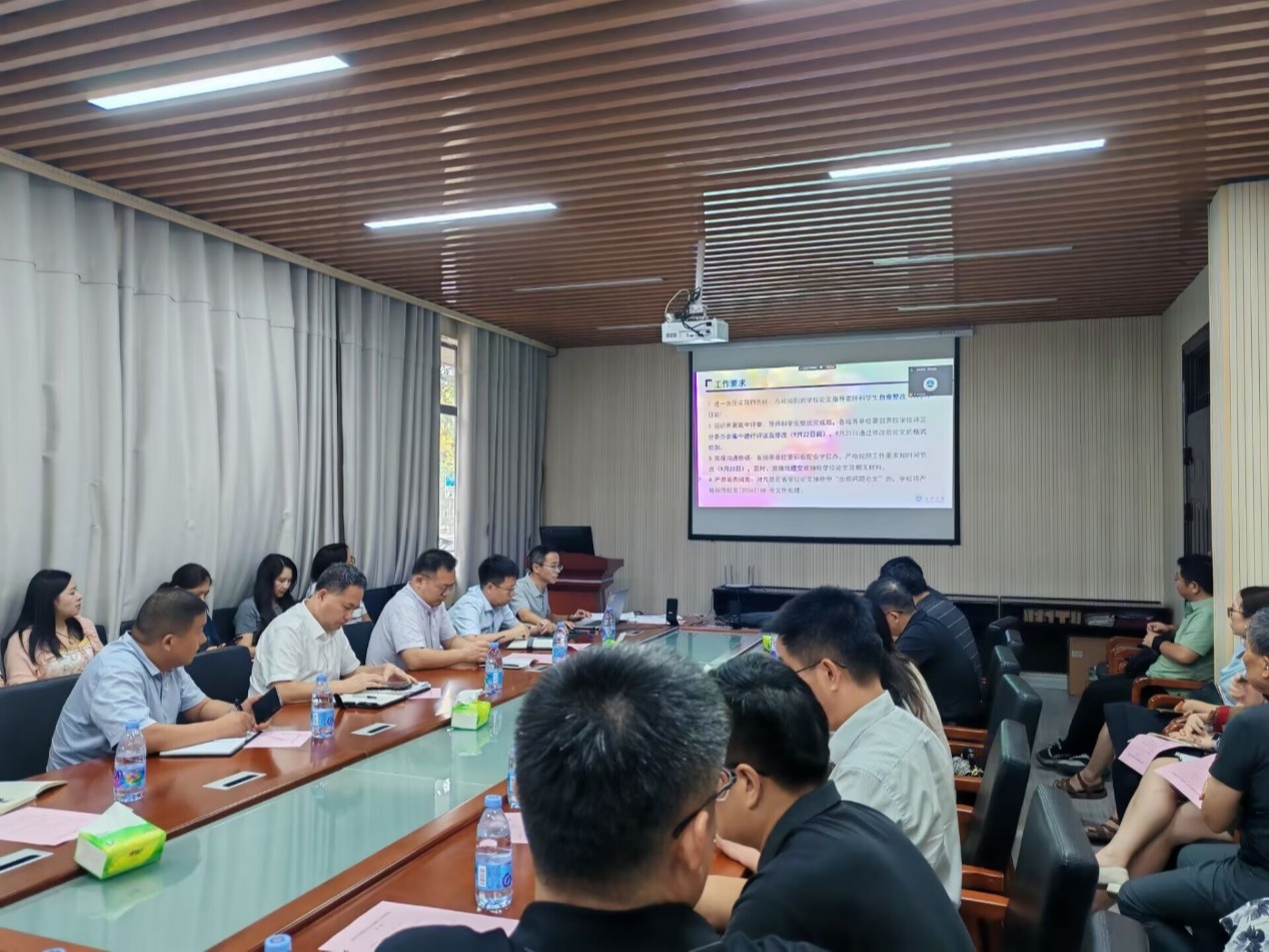 2025.09.199月17日下午2:00,研究生院在行政楼110会议室组织召开了研究生学位论文质量提升工作会,副校长江厚顺、各学院分管研究生教育副院长及相关同志出席会议。会议由研究院院长方正武主持,以线下线上相结合的方式进行。会上,研究生院副院长袁海山结合学位论文抽检概况、我校近几年学位论文抽检情况、论文抽检结果对各学科、学院的影响、往年抽检评议“不合格论文”专家评语实例及2025年省学位办抽检学位论文工作要求五个方面在会上...