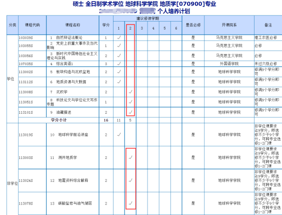 ⑵课程代码可参看专业培养方案和个人培养计划查询。见图六