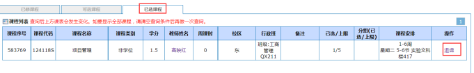 ⑶如果误选课程,可以在已选课程进行退课。图七