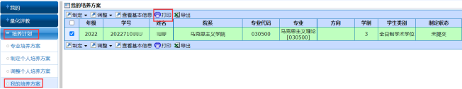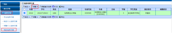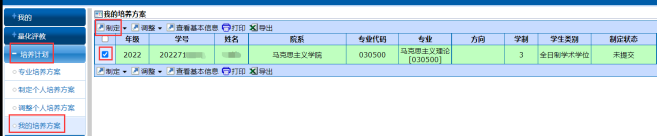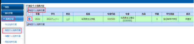 ②制定个人培养方案:培养计划-制定个人培养方案-勾选-点击制定个人培养方案见图二