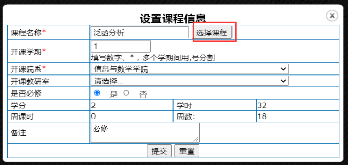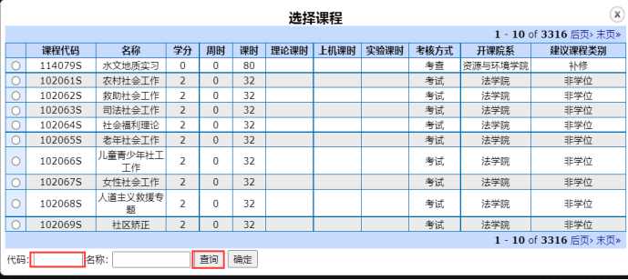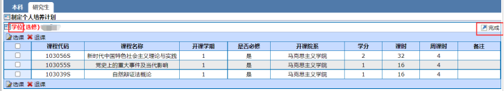 ▲补修课是指跨专业录取的研究生需要补修的本科阶段课程,如果不是跨专业录取者,不添加补修课程组,不选择补修课程组课程。