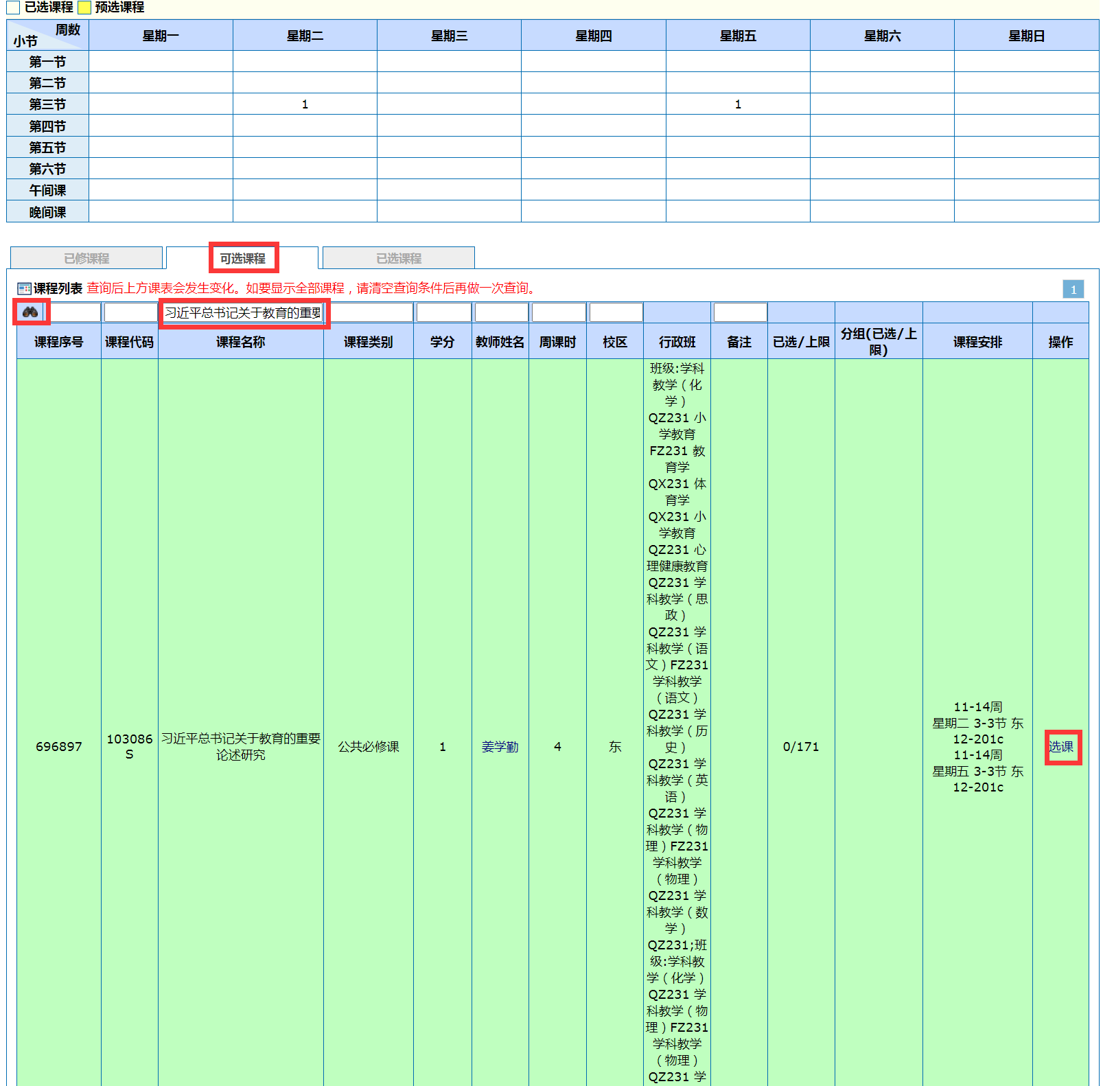 ⑴优先使用课程代码查询,课程代码具唯一性。可减少误选。