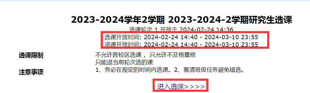 1、务必在规定的时间内进行选课。