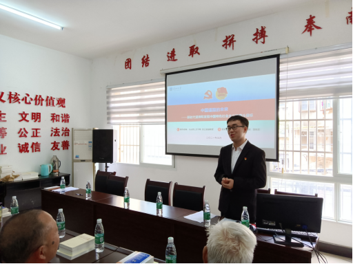 第二场,讲师团成员郭先哲主要从“中国道路的未来”为切入点,通过一个个历史事件、一张张图片生动展示了从建党的开天辟地,到新中国成立的改天换地,到改革开放的翻天覆地,再到党的十八大以来党和国家事业取得历史性成就、发生历史性变革,讲述了中国共产党团结带领全国各族人民从站起来到富起来、强起来的伟大飞跃。