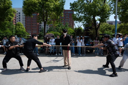 15时,趣味运动会正式拉开帷幕。根据大家前期报名,依次进行了“拔河”、“保卫气球”、“抢凳子”、“传递乒乓球”、“三人四足”五项比赛。活动开始后,各队伍间展开激烈的比拼,既饱含趣味性,又充满挑战性。在“拔河”项目中,吴星谭同学带领的队伍表现十分亮眼,赢得在场同学呼声连连。