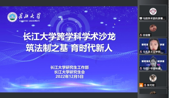 12月5日,以“筑法制之基,育时代新人”为主题的第二十期研究生跨学科学术沙龙在线上顺利举行。法学院程爱军老师、马克思主义学院徐骆老师应邀出席点评交流,100多名研究生同学旁听了此次学术沙龙。
