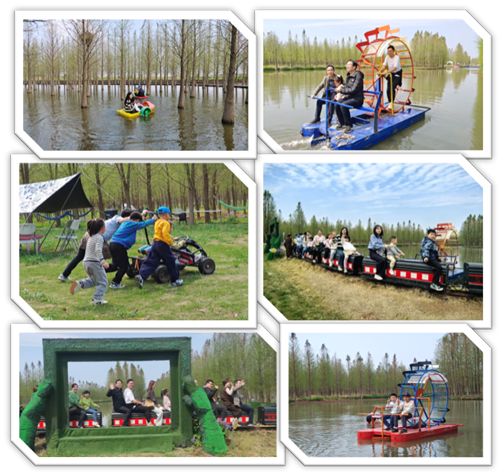 此次活动,还开展了趣味拓展项目,如手摇船、风车船、手推卡丁车等,通过自由组队、团队合作的方式,提升集体凝聚力。