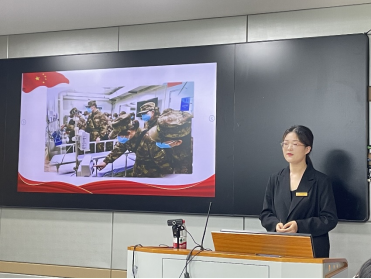 朱小丽同学以十天建成“火神山”的奇迹为例,声情并茂地向大家讲解了伟大抗疫精神在这场抗疫斗争中的生动体现。火神山没有山,但是有山一样的人们,从建筑设计师、物流平台到基建工人,千千万万劳动群众在各自岗位上埋头苦干、默默奉献,汇聚起了战胜疫情的强大力量。他们在平凡岗位上续写不平凡的故事,让我们看到了民族团结、共克时艰的家国情怀。