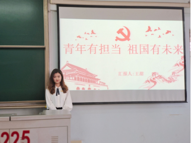 王甜同学讲述了一代代勇毅的中国青年前赴后继立鸿鹄志、做奋斗者,敢做时代先锋、勤于追逐梦想的故事,他们肩负起保家卫国、振兴民族、服务人民的重担,为实现“第一个百年”奋斗目标贡献磅礴之力。她表示,青年追梦人立于时代巨轮之上,要扛起国家和民族赋予的重任,用实干彰显出新时代中国青年应有的担当,继续坚定理想信念练就过硬本领,在新起点新征程上只争朝夕、不负韶华。