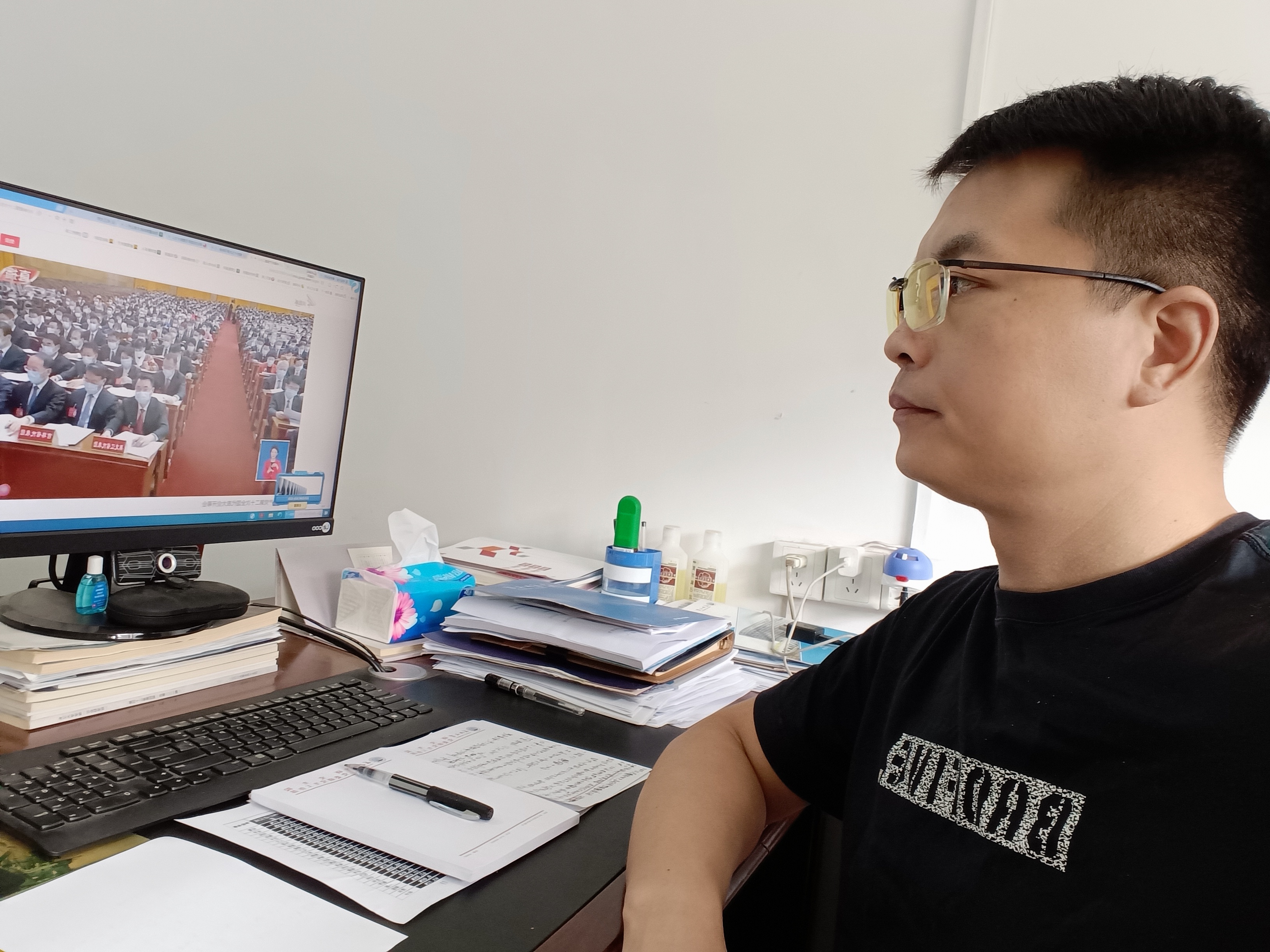 10月16日上午,举世瞩目的中国共产党第二十次全国代表大会在北京隆重开幕。研究生院全体教职工通过电视、广播、网络直播等形式收听收看了党的二十大开幕会盛况。