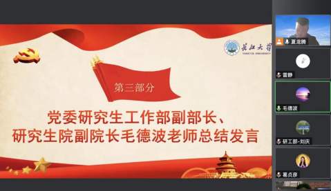 (通讯员 方晓蕾)凝心聚伟力,奋进谱华章。迎着金秋的喜悦,中国共产党第二十次全国代表大会在北京隆重开幕。10月16日下午,校研究生会召开学习党的二十大报告交流会。党委研究生工作部副部长、研究生院副院长毛德波,研工部刘庆、雷静,第十七届研究生会全体成员出席本次会议。此次以线上腾讯会议方式进行。