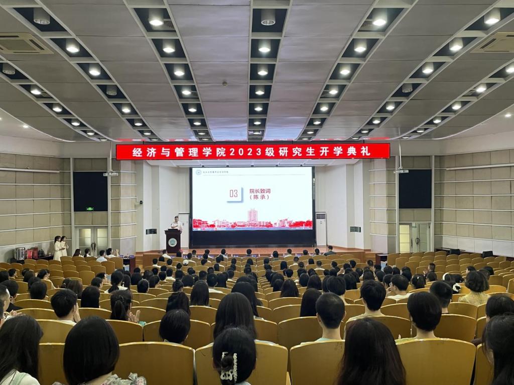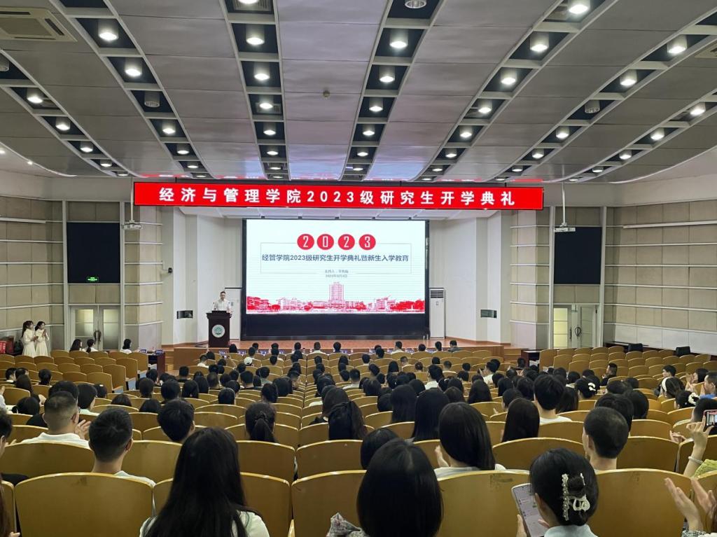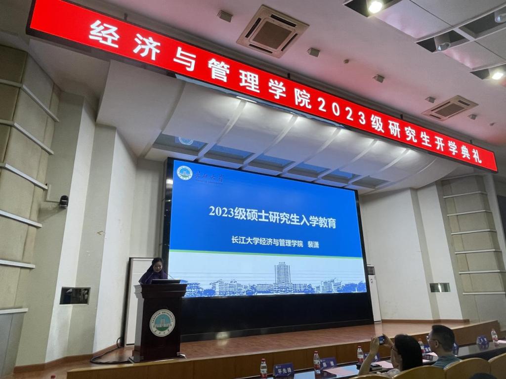 (通讯员 黄承石 图 张悦)2023年9月3日上午8:30,长江大学经济与管理学院2023级研究生新生开学典礼暨新生入学教育大会在东校区12号教学楼405学术报告厅顺利举行。长江大学研究生工作部部长关辉、经济与管理学院院长陈承、副院长裴潇、副院长何蒲明、副院长王华强、农经系主任林龙飞、MBA中心主任李洪文、MPACC中心主任肖博、MPACC教学秘书陈维、研教办老师宋玉婷、谢本贵、研工办辅导员朱翠玲、黄承石等出席开学典礼。全体2023级278名研究生新同学、以及部分往届学生代表共同见证这一时刻。开学典礼由经济与管理学院党委副书记平先锋主持。