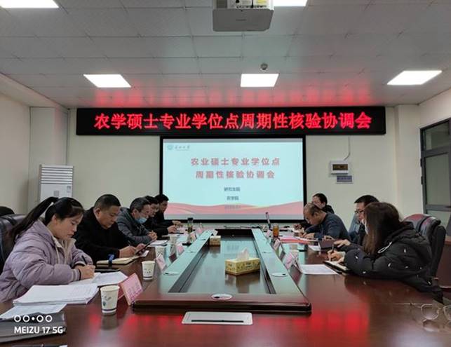 (通讯员 武美燕)为切实做好农业硕士专业学位授权点周期性核验工作,研究生院于1月11日上午9:30在农科大楼3064会议室召开农业硕士周期性核验工作协调会。会议由研究生院副院长袁海山主持,我校5个农业硕士培养学院副院长、研究生秘书及骨干教师共计20余人参加了会议。