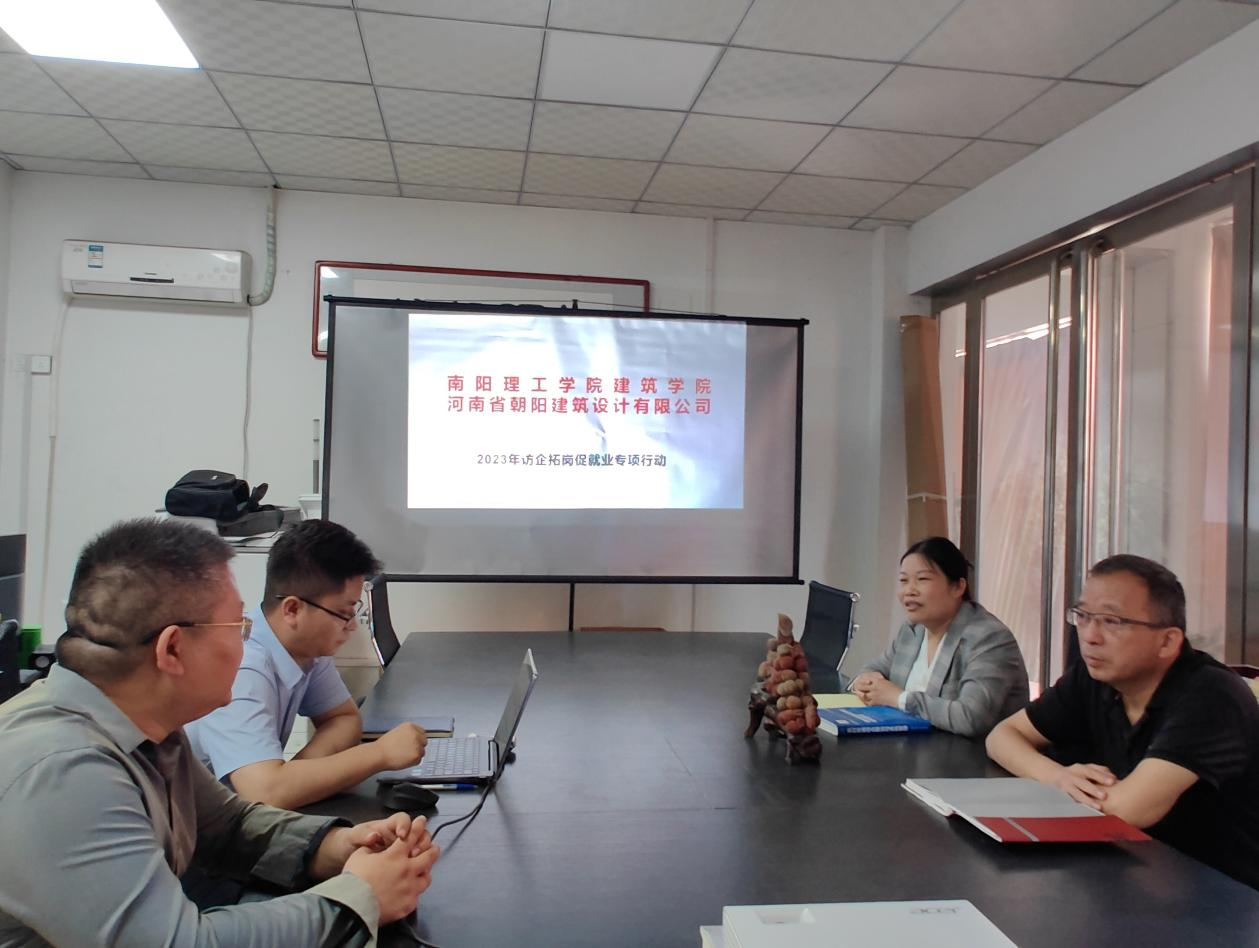 本网讯 针对今年严峻的就业形势,本着"内抓教育,外拓市场、全员参与”的原则和"早起步、早准备、早动手"的策略,我院积极、有针对的拓宽就业途径,千方百计提高就业率和就业质量。近日来,通过积极开展访企拓岗促就业专项行动,学院领导班子分赴北京、武汉、成都等城市,先后与十余家企业进行深入交流,达成就业实习初步意向。 6月5日,6686体育院长谭征、副书记张辉一行赴河南省朝阳建筑设计有限公司开展“访企拓岗促就业”专项行动。