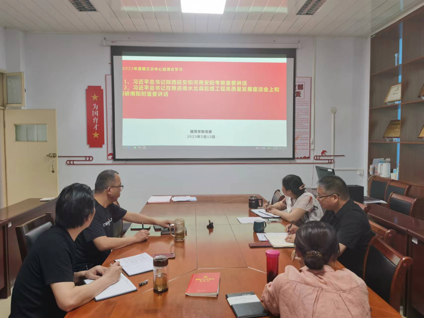 本次会议由党委书记田光辉主持。田书记带领大家重新学习了习近平总书记在陕西延安和河南安阳考察时的重要讲话精神、习近平总书记在推进南水北调后续工程高质量发展座谈会上和调研南阳时的重要讲话精神。会上张书记和周院长分别进行了交流发言。张书记强调,再次学习习近平总书记调研南阳的重要讲话精神,依旧有新的收获。作为一名领导干部,要把师生利益放在第一位,只有让师生满意了,学院事业才能向前迈进。