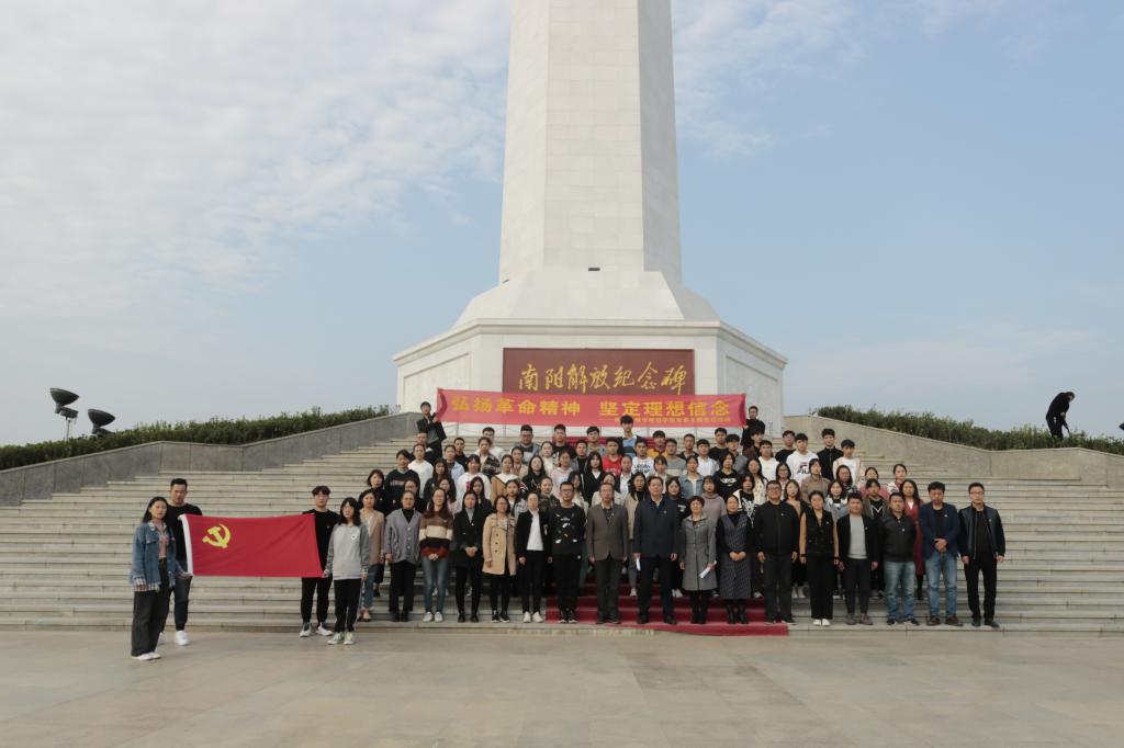 活动开始,学院党委书记陈博同志带领大家参观了南阳革命纪念碑,带领现场党员回顾了先烈们艰苦奋斗的峥嵘岁月。随后,陈书记带领大家重温了入党誓词,并为此次党日活动致辞。他说道:只有明确了初心使命,增强了党员意识,坚定了理想信念,进一步强化了责任担当意识,才能在守初心中铸就忠诚,在担使命中锤炼作风。