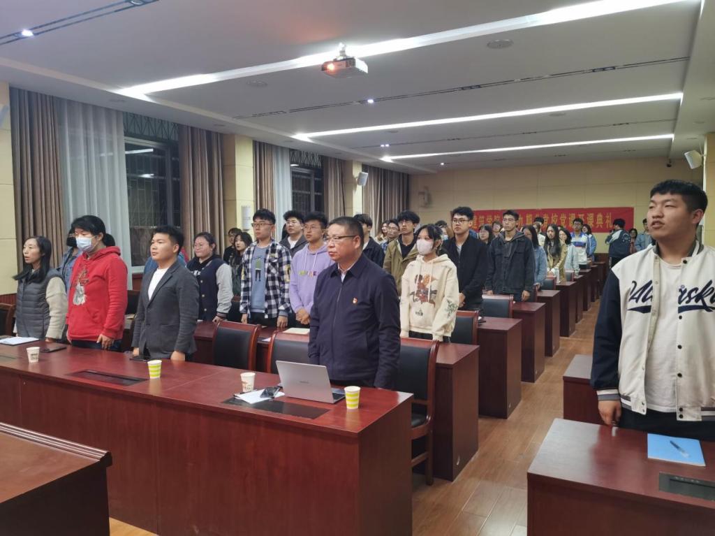 典礼伊始,全体师生起立奏唱国歌。随后,由田光辉书记作动员讲话。他指出从党的百年历程来看,青年知识分子努力拼搏,奋发进取,在国家兴衰、民族存亡的紧要关头和每个奋斗时期都积极要求加入党组织,目标崇高,立场坚定。强调入党积极分子不仅要思想入党,更要行动入党,以共产党员的标准严格要求自己,以学习为契机,坚定理想信念,学习党的理论知识,身体力行,在学习、生活中发挥先锋模范带头作用。