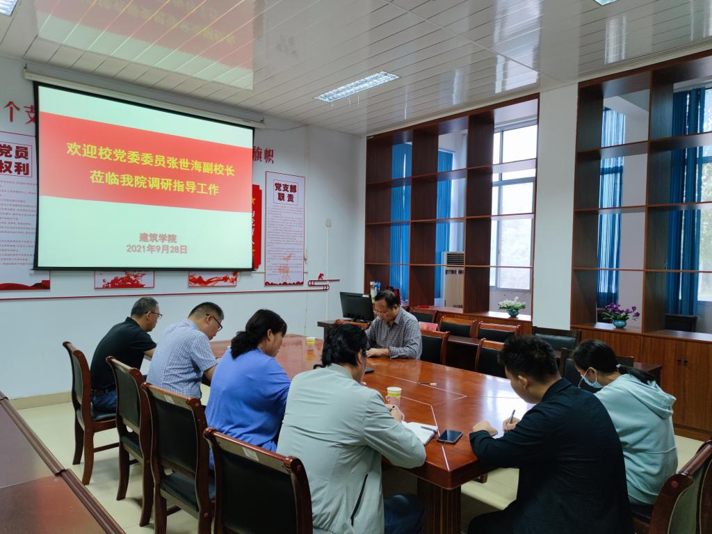 张世海副校长认真听取汇报并提出指导意见。他强调,一是党建工作当前的重点任务,就是巡视反馈整改工作。领导班子要提高政治站位,按照整改工作方案的要求,逐项整改落实到位,夯实党建工作基础。二是进一步认识党史学习教育的重大意义,要把习近平总书记“七一”重要讲话精神作为当前和近期的重要学习内容,深刻理解伟大建党精神这个精神之源,要把讲话精神融入到课程思政的内容之中,扎扎实实落实好立德树人根本任务。三是对建筑学专业评估工作中遇到的专业教室调整、青年教师培养、教师职称评审等方面的问题提出了具体的指导意见。