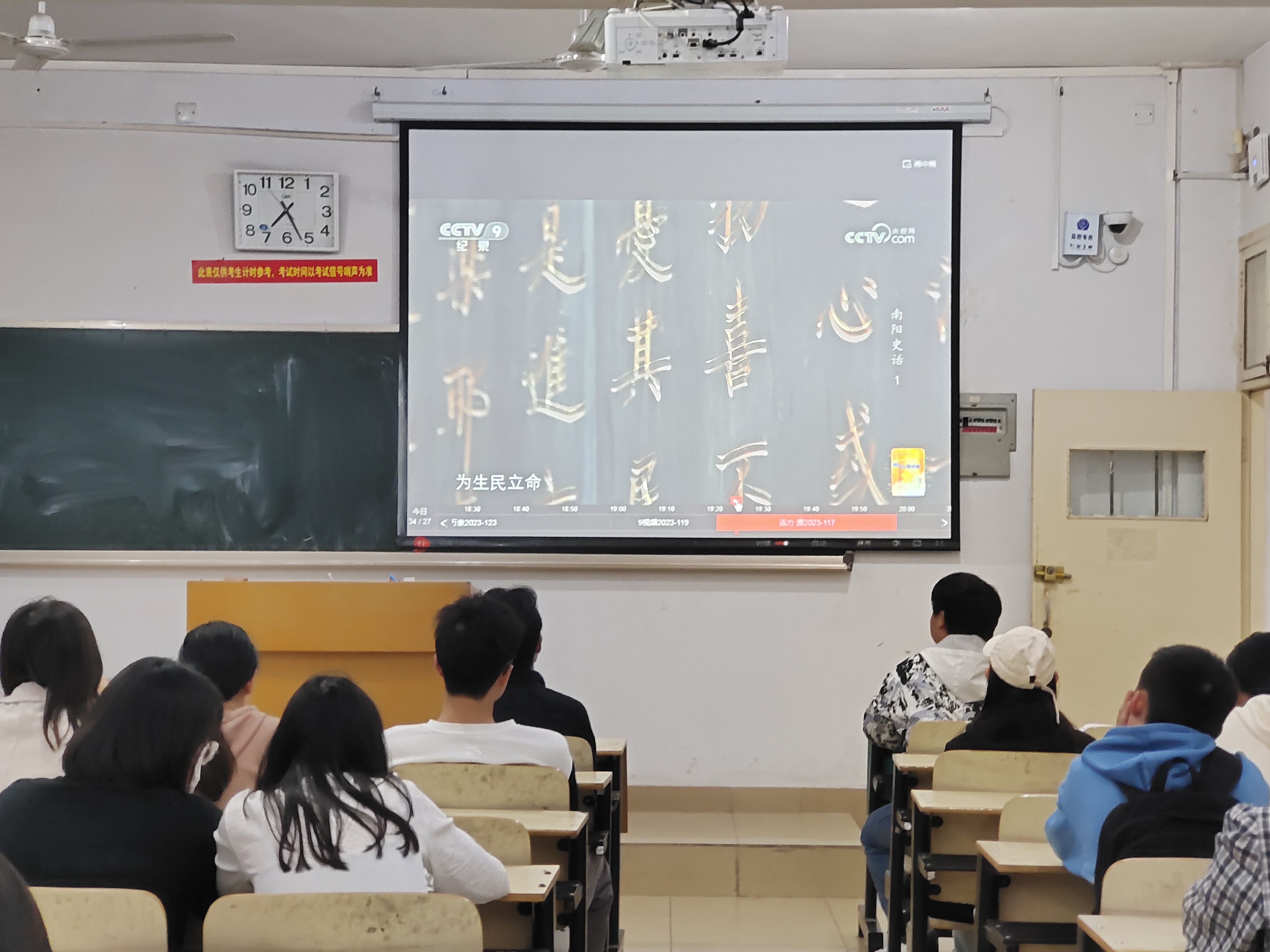 本网讯 传承官德文化,筑牢清廉之基,根据校党委组织部下发的《关于认真做好中央广播电视总台大型党员教育纪录片〈南阳史话〉学习宣传工作的通知》要求,6686体育于4月27日晚,分别在7106、7308组织师生党员130余人集中观看纪录片《南阳史话》。