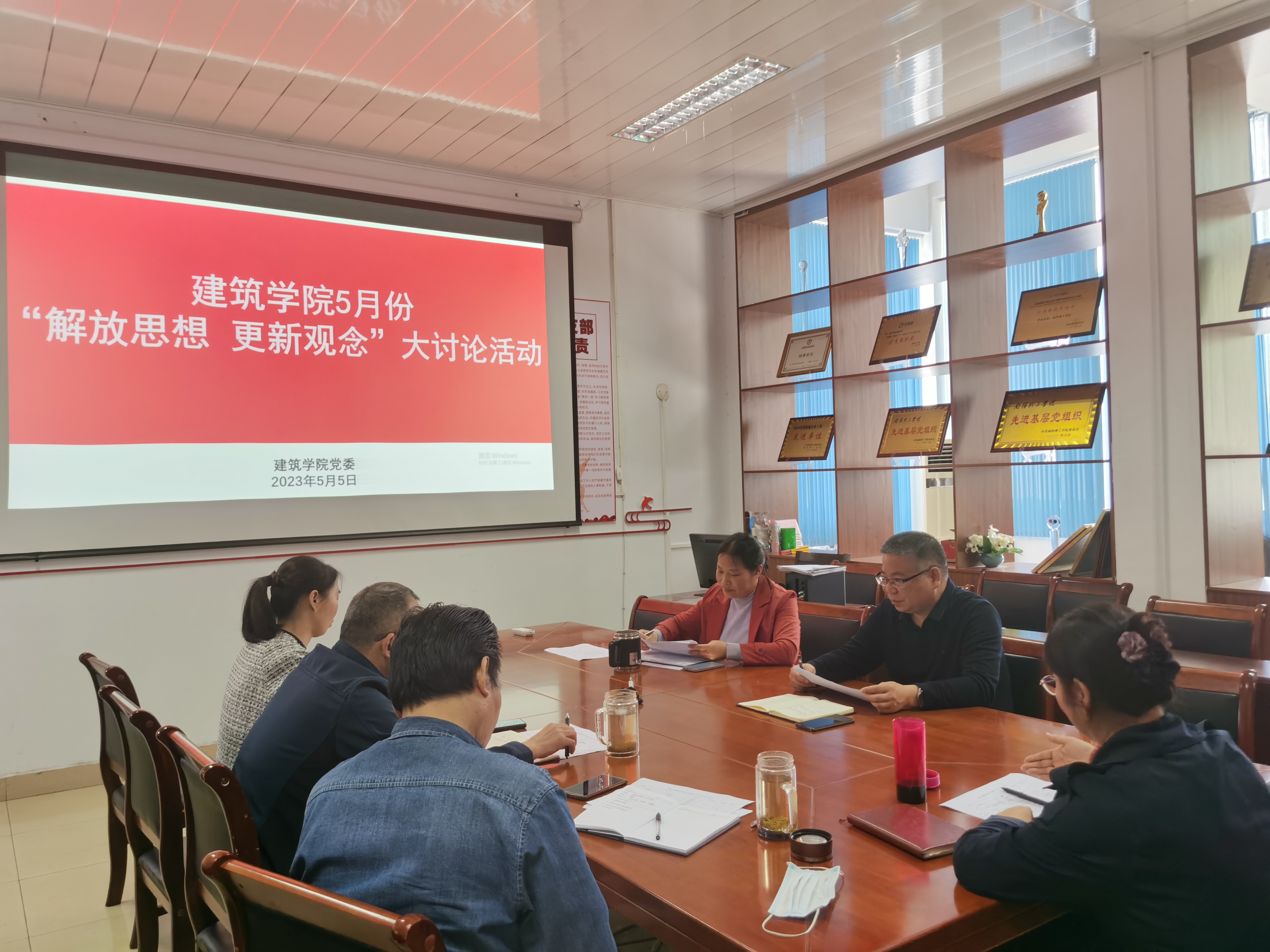 本网讯 6686体育于5月5日组织开展5月份“解放思想 更新观念”大讨论活动,学院党委领导班子成员及建筑学教研室副主任参加。