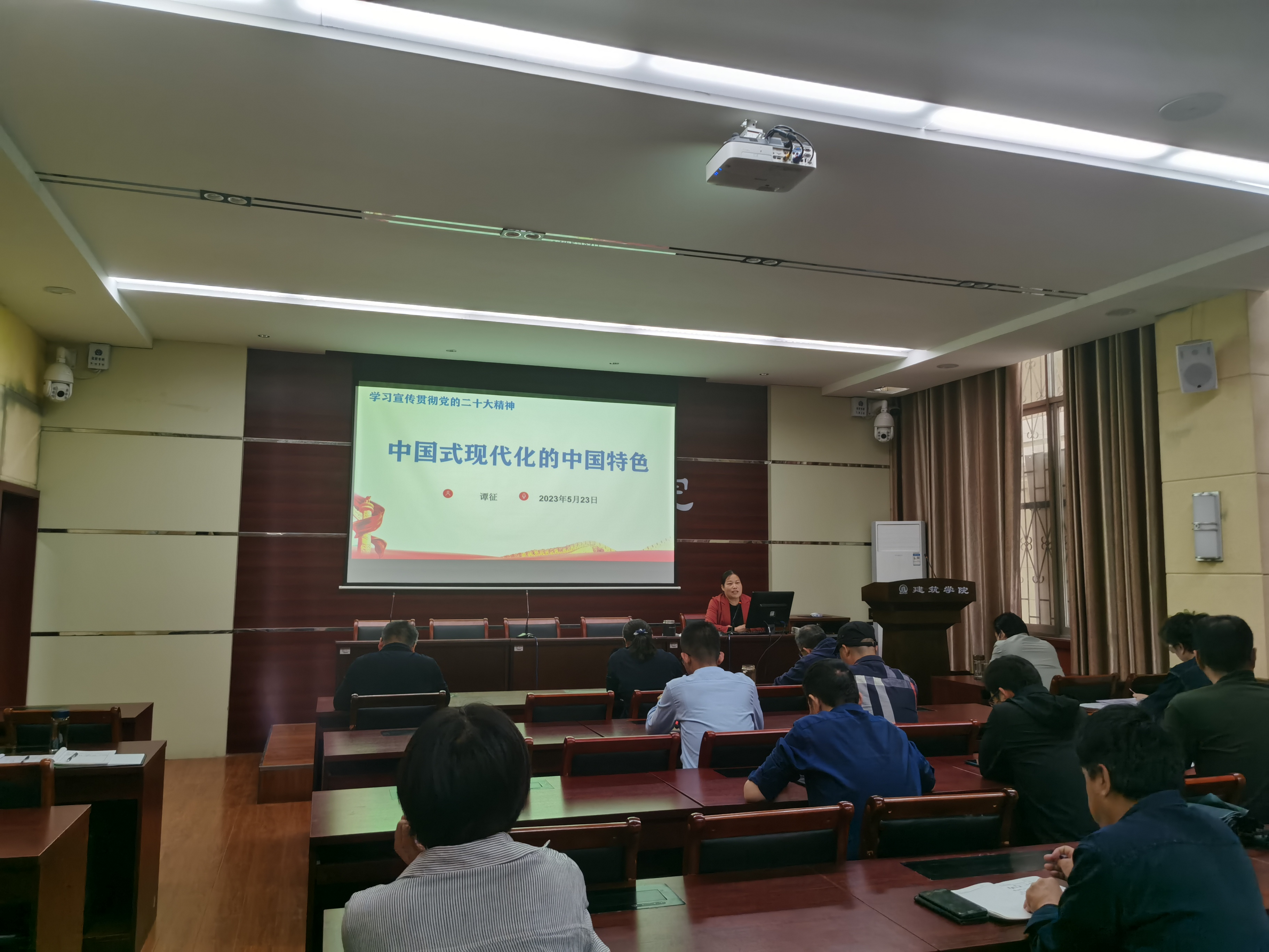 本网讯 为引导广大教职工更好地理解和把握中国式现代化的深刻内涵,充分激发全体党员的担当精神,用实际行动为中国式现代化建设贡献力量,6686体育于5月23日在7106多功能报告厅开展以“中国式现代化的中国特色”为主题的专题党课,全院教师党员参与学习,院长谭征担任主讲人。