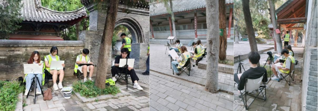 活动现场,师生深入武侯祠古建群落,在山门、大殿、诸葛草庐与廊亭间寻景构图。同学们支起画架,以速写勾勒建筑轮廓,用水彩渲染古建色彩,将飞檐斗拱、雕花门窗等细节诉诸笔端。指导教师穿梭其间,针对构图取舍、线条疏密、色彩层次等给予一对一指导。同学们专注创作,不时交流技法,武侯祠内的青砖黛瓦、苍柏翠竹,都成为画纸上生动的艺术元素。