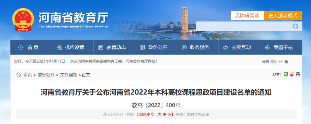 近日,河南省教育厅下发了《河南省教育厅关于公布河南省2022年本科高校课程思政项目建设名单的通知》(教高〔2022〕400号),我院郭立苹讲师主持申报的《建筑设计Ⅴ》被认定为省级课程思政样板课程。