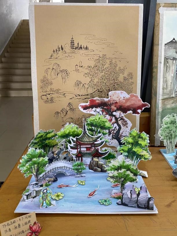 本次作业展由王忞老师和张茜老师指导,2021级环境设计专业三、四班52位同学的作业全部展出。同学们围绕立体园林的设计主题,通过立体手工的形式直观具体地表达了自己的想法与设计,展现了自身的手绘能力以及对园林知识的理解和空间想象能力,同时也增添了课程的趣味性,激发了同学们的积极性。