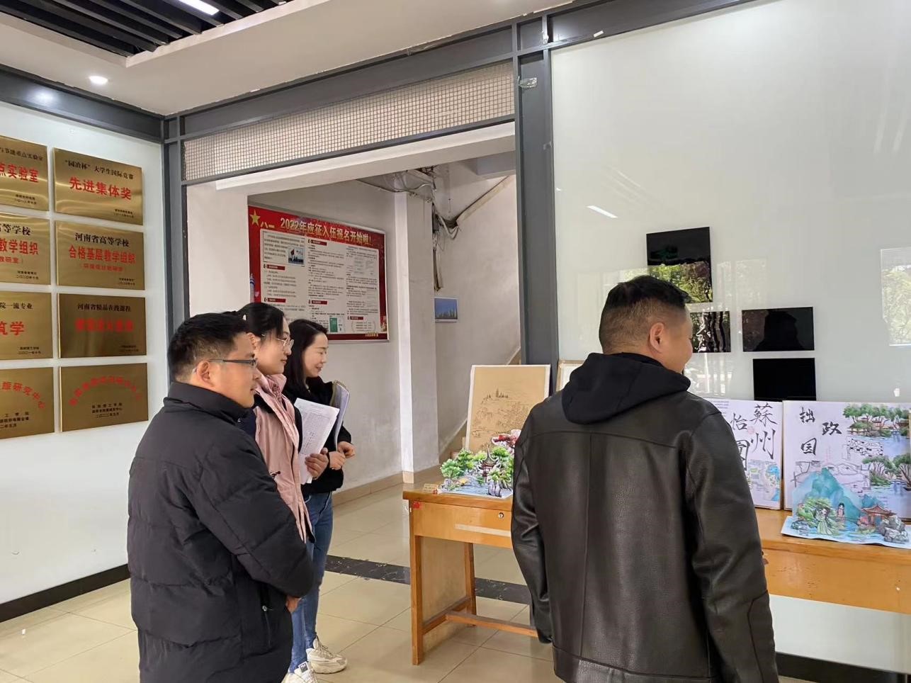 展出现场,校内同专业的老师也到场指导,对同学们的课程设计成果进行了认真的评阅,并提出了宝贵意见。同学们在对作品进行鉴赏和学习的同时,积极交流设计思路,现场气氛活跃。