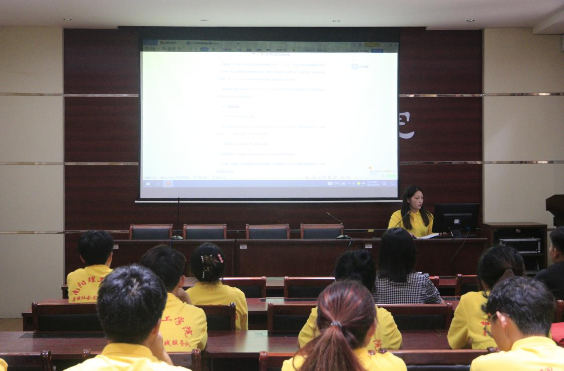 随后,张佈霞同学向大家分享了自己的社会实践经验,并强调了中青网“三下乡”活动的投稿方式与要点、暑期社会实践结项材料以及调研报告的书写要求等重要事项。