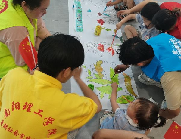 本网讯(学生记者/张佈霞)为庆祝党的102岁诞辰,在2023年“七一”建党节来临之际,7月1日上午,6686体育“逐梦”志愿宣讲团于实训楼大厅与未来听语南阳康复中心师生联合开展“献礼建党节,学‘两弹一星’精神”主题绘画活动。