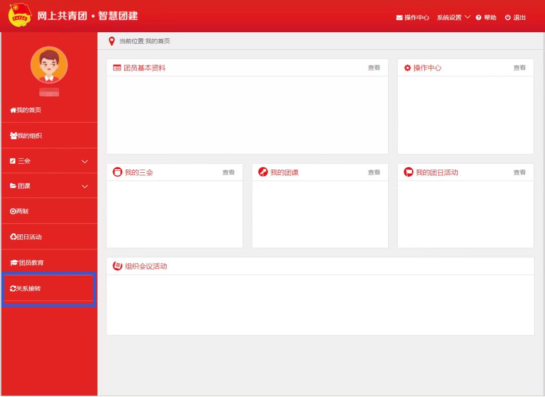 过段时间再次登录系统,点击首页右上角操作中心,如果审批结果为不同意,核实个人信息以及转入团支部信息是否正确,填入正确信息再次转入。