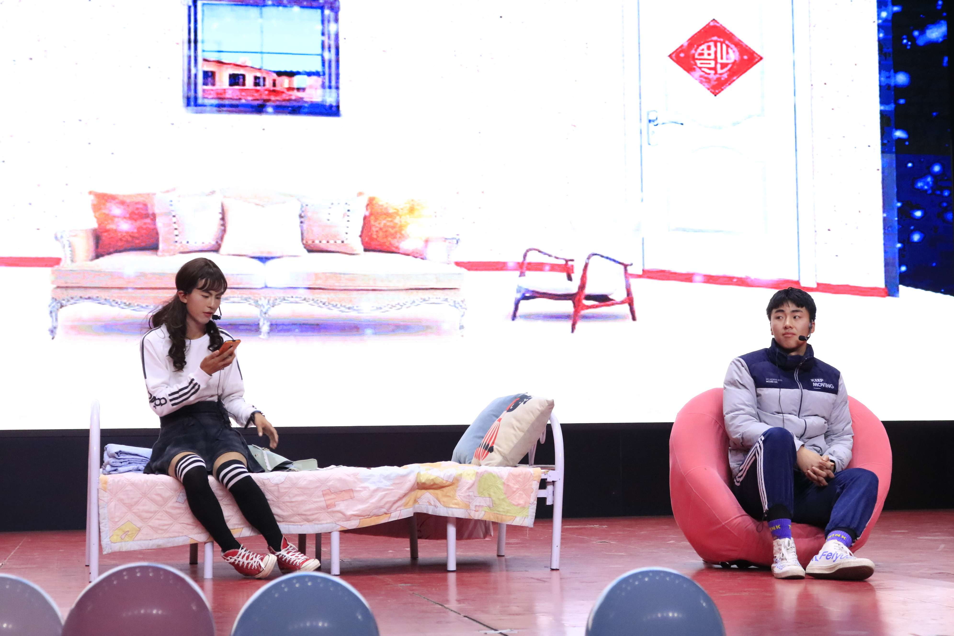 第一环节以男生对唱《世间美好与你环环相扣》开场,展现了我院学子青春、积极向上的精神风貌。舞蹈《告白气球》、小品《趁我们还相信爱情》、独唱《成全》带大家感受了一番爱情里的甜蜜与辛酸苦楚。