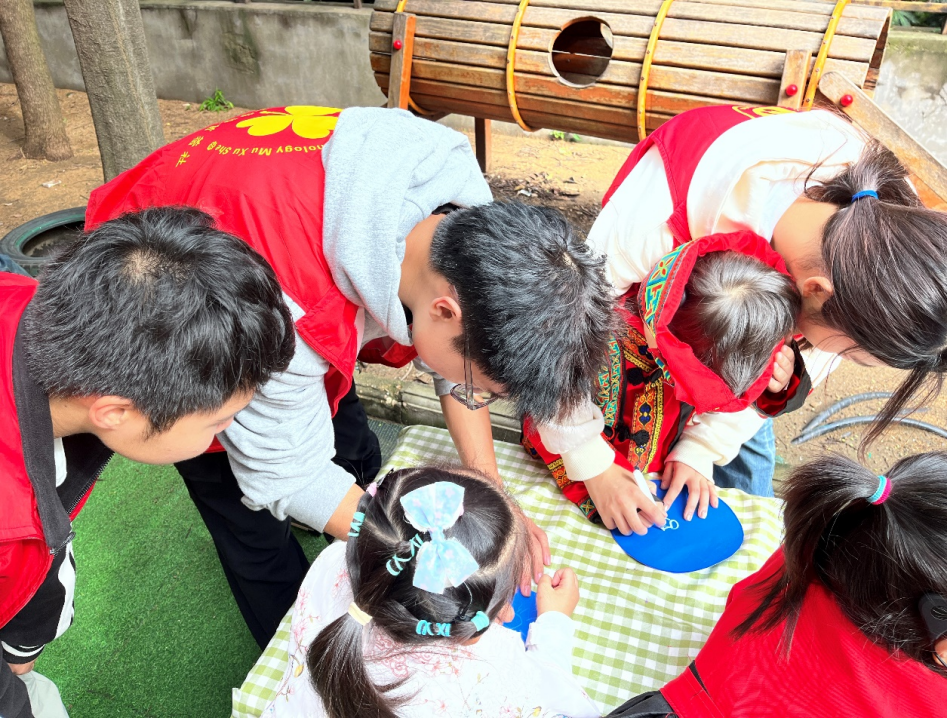 活动过程中,志愿者和小朋友们一起举行了开幕仪式和升旗仪式。通过画简笔画、体验民族风俗、跳竹竿舞以及手绘巨型条幅等活动,志愿者们积极引导孩子们以切身体验的方式了解中秋节的相关风俗,加深了孩子们对中秋节传统文化的了解,感受中秋佳节的团圆氛围。