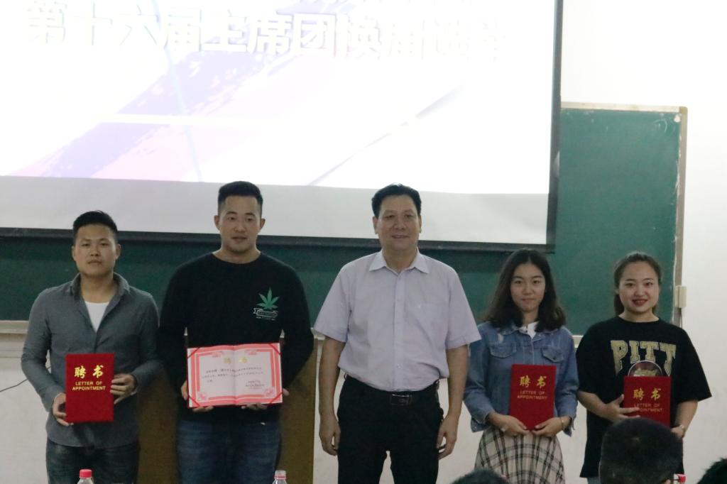本次选举由第十五届学生会主席姚一博主持。首先,主持人表达了对老师和搭档们的感谢,然后对学生与工作学习提出了一些建议。随后,由陈博书记为第十五届主席团颁发聘书。然后竞选正式开始,竞选人依次上台发言,对自己上一年在学生会的工作情况做以总结,并阐述自己的竞选原因以及对未来工作的规划。其中,学习部部长郭威以四个字总结了自己一年的工作经验:少说,多做。少说空话废话、多做实事!