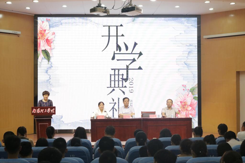 开学典礼由副院长谭征主持,首先由张建文院长代表学院向145名2019级新生表示热烈的欢迎,简要介绍了学校及学院的历史概况,随后对新生提出了四点期望:一是独立自主,调整心态;二是爱国爱家、爱亲友爱自己;三是勤于思考,有所作为;四是确立目标,无悔青春。其次,学业老师代表张振飞以幽默的演讲对2019级新生提出几点建议,张振飞老师还以假期热播电影《哪吒之魔童降世》中的经典台词勉励大家:我命由我不由天!争做学霸,不负韶华。