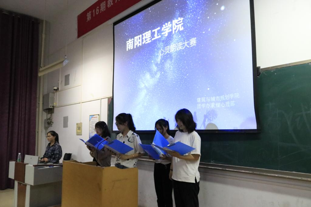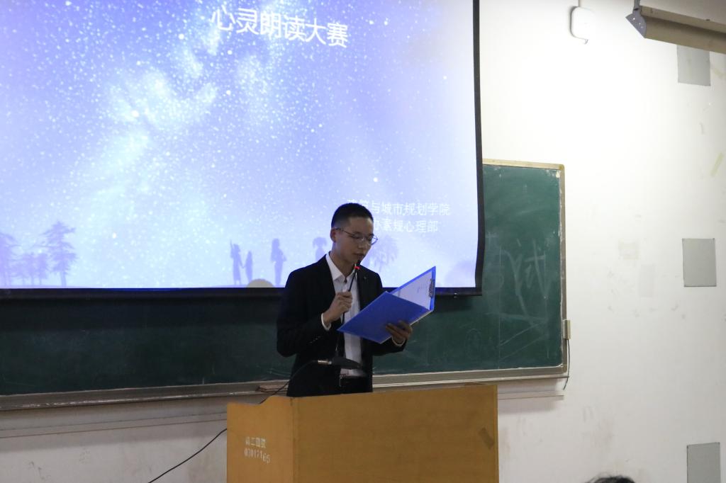 5月26日晚,由建筑与城市规划学院团学办心理素规部主办的“心灵之声”朗读大赛于14教102室如期举行。参赛人员为18级学生,秦嘉琪和赵蒙恩担任全场主持,17级部分学生担任评委,18级全体同学到场参与。