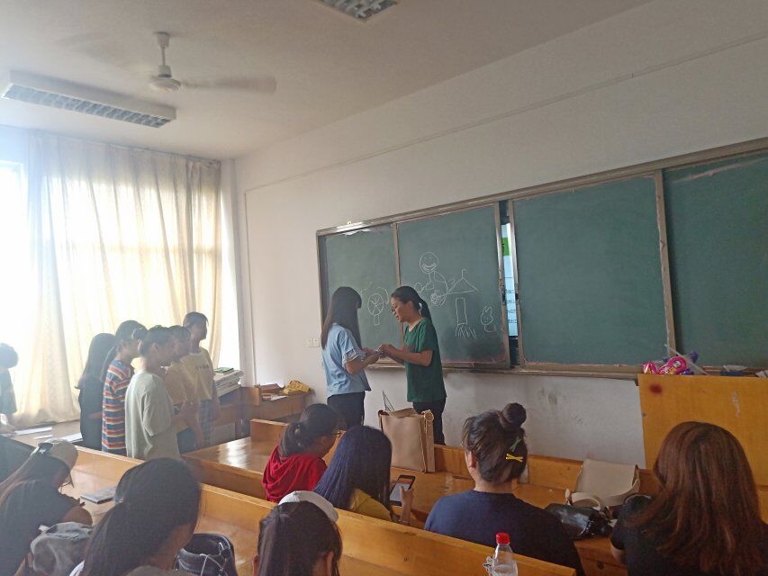 本次活动共分三个环节,前两个环节为游戏环节,分别是“心有灵犀”与“涂图讲讲”。参赛人员按每组六个人分组进行游戏,游戏过程中观众们热情高涨,现场气氛活跃。游戏环节结束之后,工作人员分发涂鸦所用的T恤、笔刷等工具,开始第三个环节——“T恤涂鸦”。每个小组三件空白T恤,分别按照青春、爱国、环保三个主题进行设计。同学们的想象力天马行空、设计各具特色,展示着现代青年的创新思维与动手能力。涂鸦好的衣服将会进行义卖,赚到的钱用以之后志愿活动的经费。至中午十二点,本次活动圆满结束。