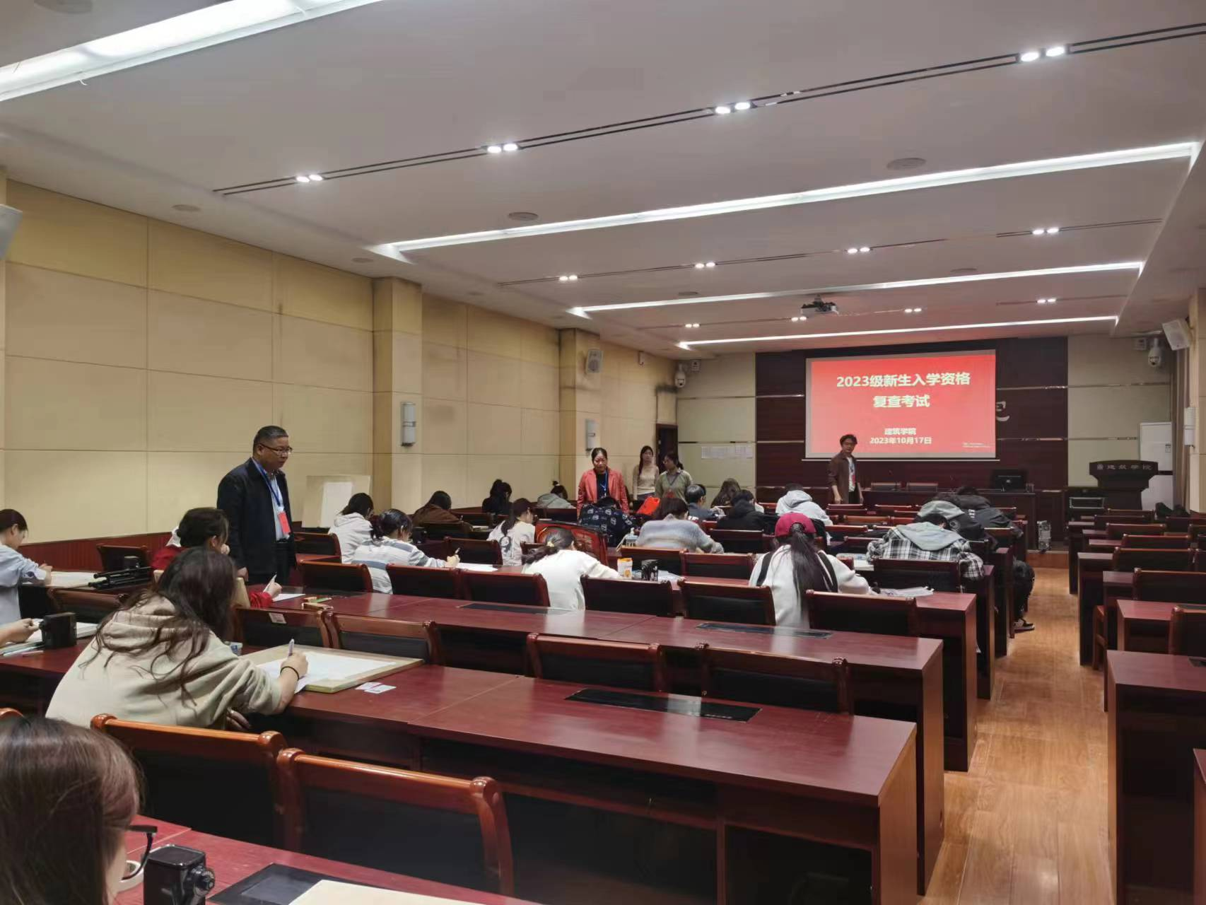 本网讯(学生记者/侯鑫亚)10月17日晚,我院2023级新生入学资格复查考试如期举行。全体新生按照专业划分进行文化课及专业课复查,各班学业导师、辅导员和班主任到场监考,我院党委领导班子成员到场巡考。