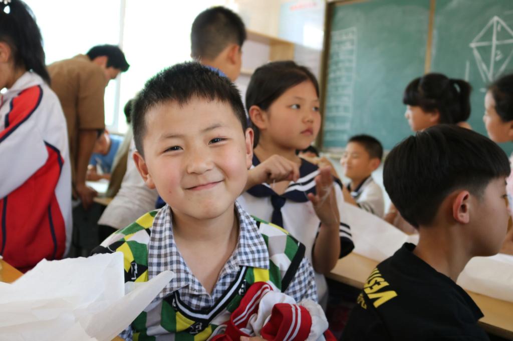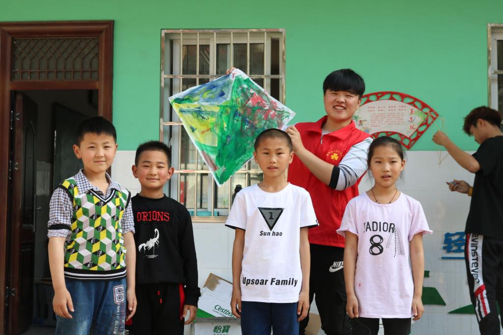 来到学校后,中心小学的老师们热情地接待了志愿者。接下来便进行风筝制作活动的第一环节,由一位志愿者上台,给小朋友们讲述风筝的制作流程,从小朋友们闪烁的大眼睛和大声的回答中能够看得出他们的兴奋和期待。之后由每一名志愿者带领四个小朋友进行风筝的制作,分组完成后,工作人员给每个小组发放风筝纸、竹篾、白乳胶、各种颜色的丙烯颜料和绳子等各种制作风筝的材料。拿到材料后,风筝制作便开始如火如荼的进行了,孩子们的想法层出不穷,天马行空的创意让他们的风筝更出彩。在志愿者们的帮助下,孩子们陆续完成了风筝的制作,有的把小熊画在菱形风筝上面,有的制作的是小黄人风筝,还有各种蝴蝶风筝、笑脸风筝等,还有的小朋友们把自己的手掌印到了风筝上去……看着孩子们脸上洋溢出的笑容,老师和志愿者们也感到十分满足与幸福。