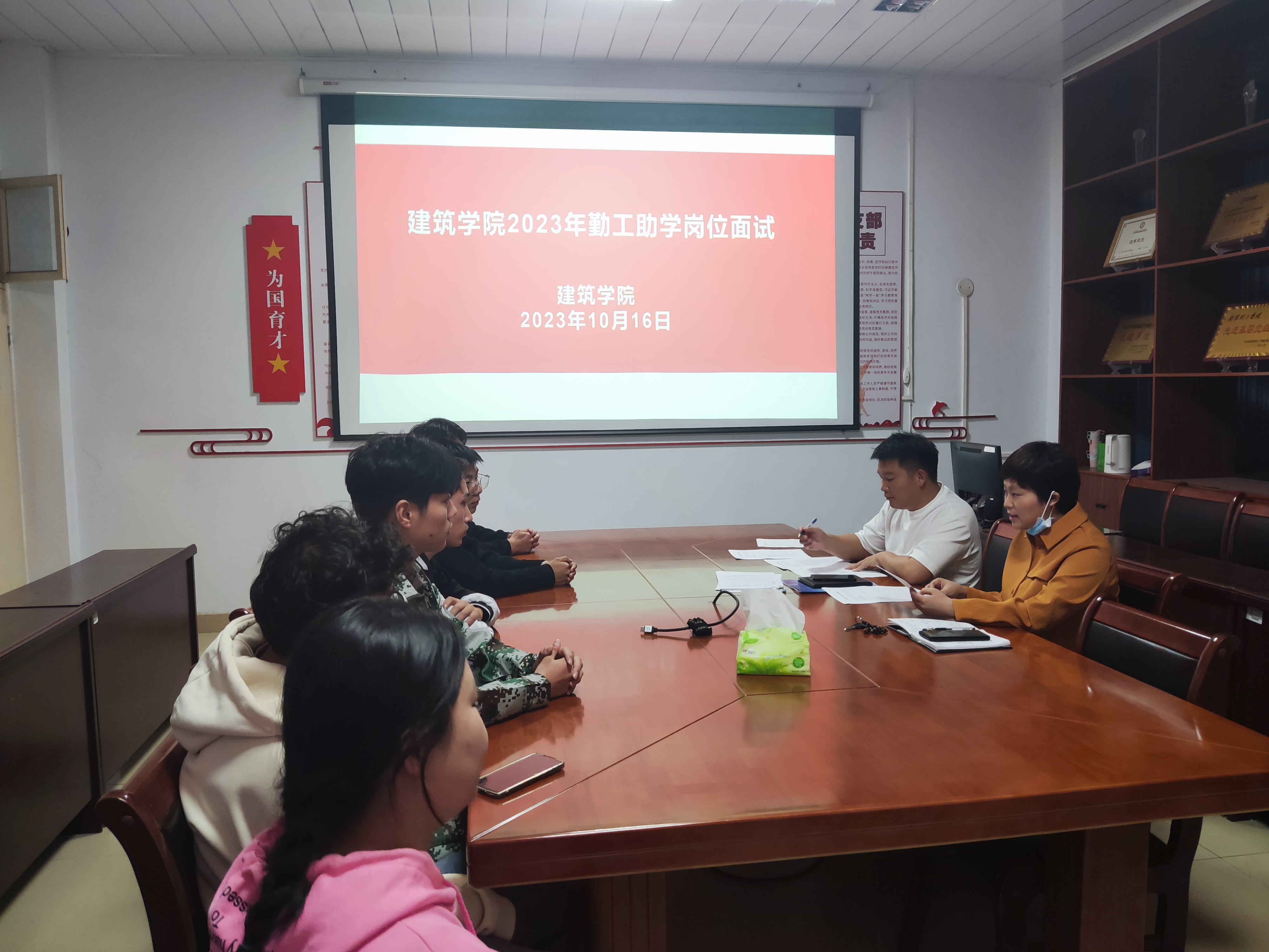 本次面试面向学院全体在校生开展,并根据自愿申请、扶困优先、竞争上岗、择优录用、个别调配的原则进行。面试现场,两位老师分别考察了竞聘者对岗位职责的理解、综合能力和岗位适配度等情况。