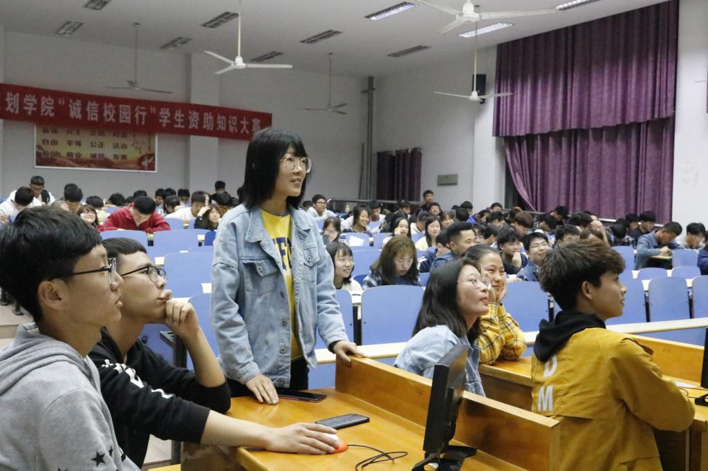 4月22日晚,由建筑与城市规划学院主办的“诚信校园行”学生资助大赛于六阶二如期举行。参赛人员为18级获得助学金以及助学贷款的同学,团学办公室主任杜鹤、17级辅导员卢钖钖出席了本次活动,18级全体同学参加观看。